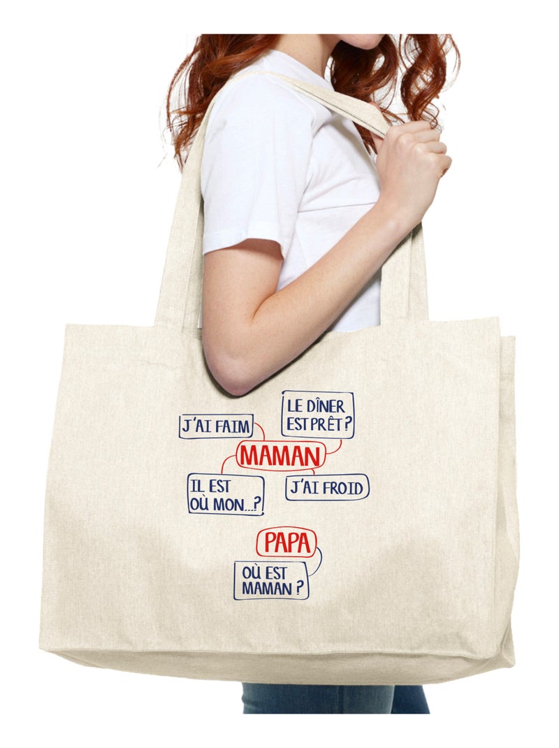 Grand cabas MAMAN J'AI FAIM, LE DINER EST PRÊT? IL EST OÙ MON?... - Beige