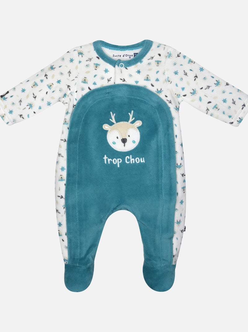 Grenouillère ISAAC VELOURS RASE OUVERTURE DEVANT NAISSANCE - Vert