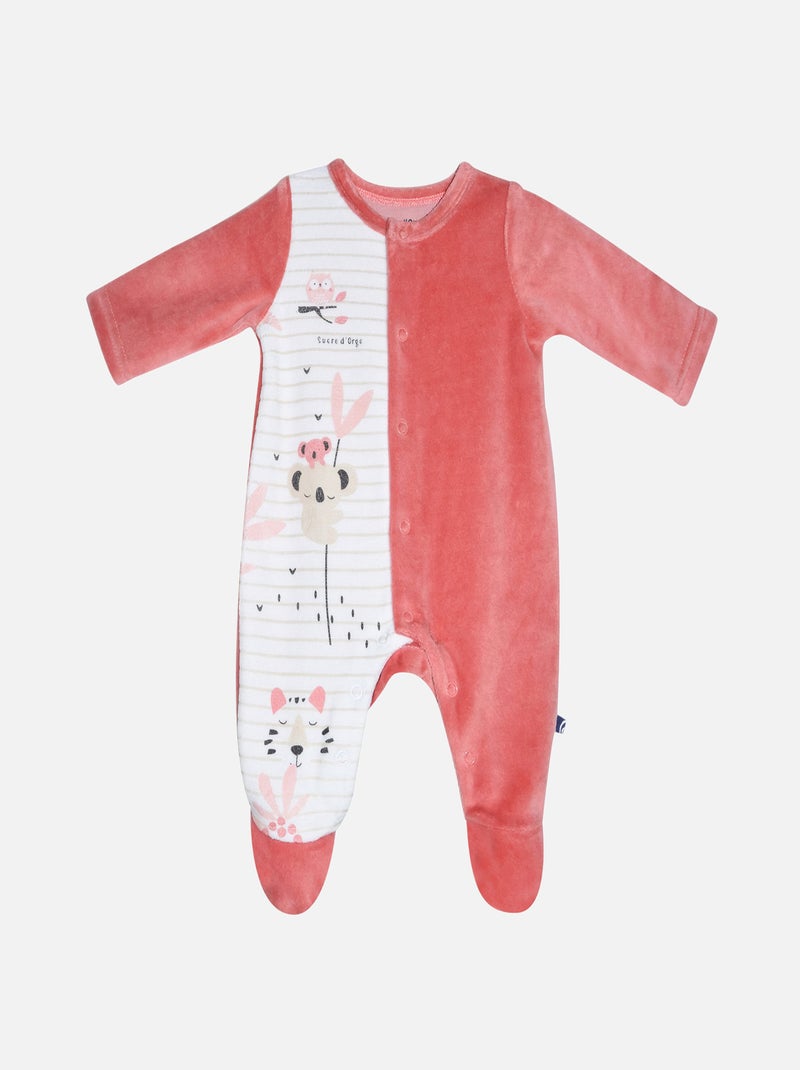Grenouillère LEONELA VELOURS RASE OUVERTURE DEVANT NAISSANCE - Rose