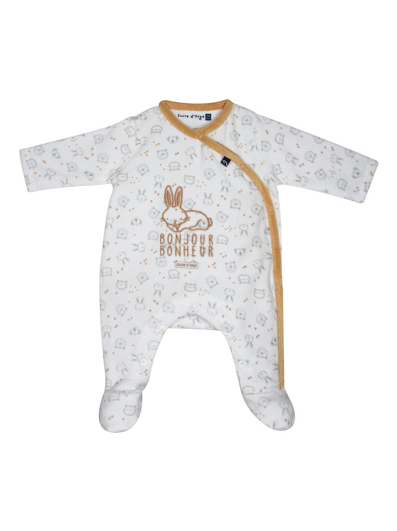 Grenouillère NOVENOË VELOURS RASE OUVERTURE DEVANT NAISSANCE - Blanc