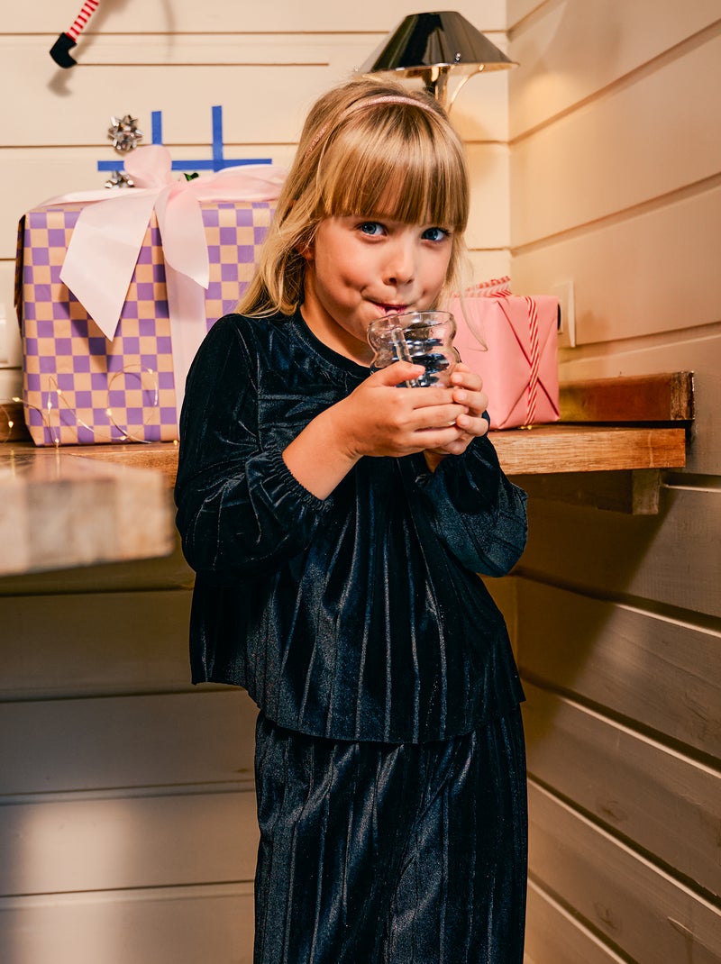 Haut en maille velvet côtelé avec nœud uni - Noir