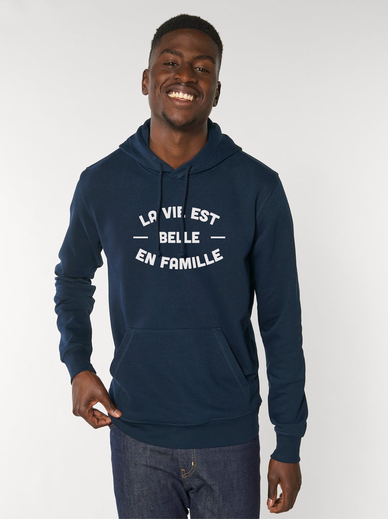 Hoodie Homme - LA VIE EST BELLE EN FAMILLE 2 FACE - Bleu marine