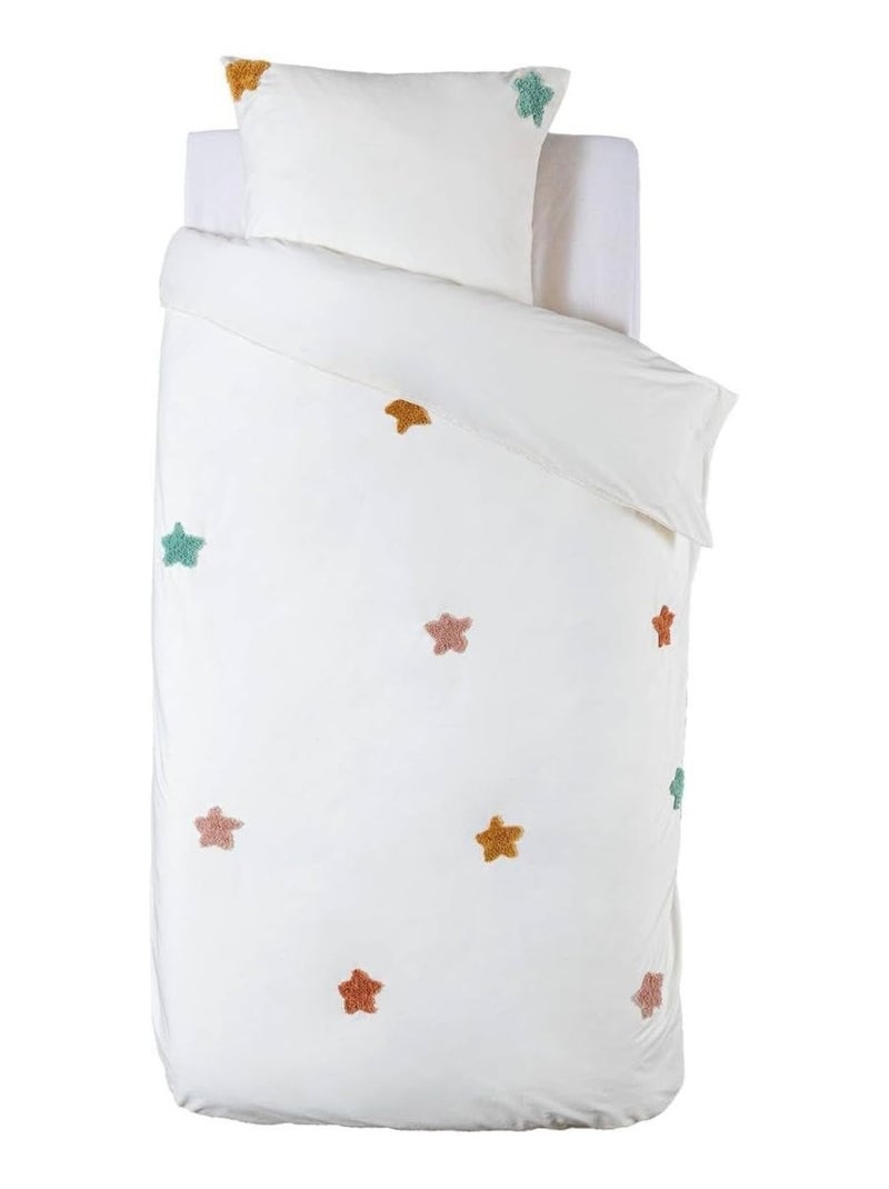 Housse de couette + 1 taie coton lave Petites etoiles - Blanc
