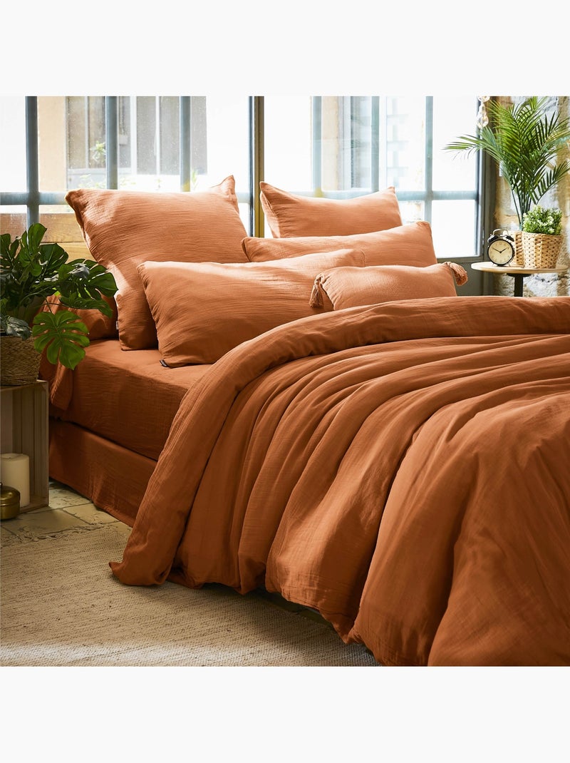 Housse de couette en double Gaze de Coton Gaia - Abricot