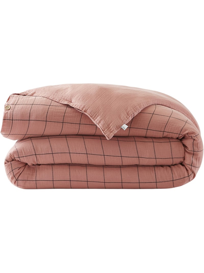 Housse de couette gaze de coton Gaia Match à carreaux - Rose