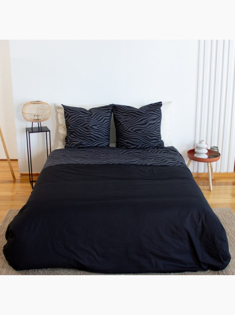 Housse de couette réversible 100% coton 52 fils + taie(s) d'oreiller - Noir