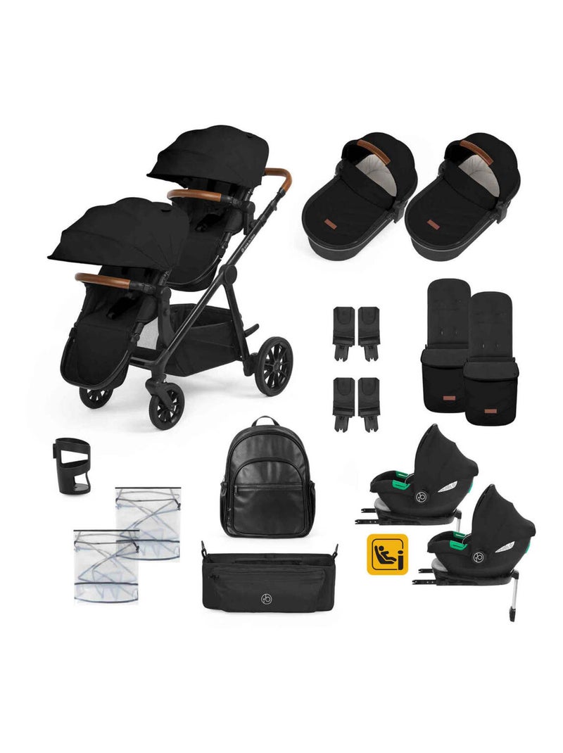 Ickle Bubba Virgo Twin 18 pcs – Poussette tandem avec i-Size Cirrus, ISOFIX et accessoires (Noir) - Noir