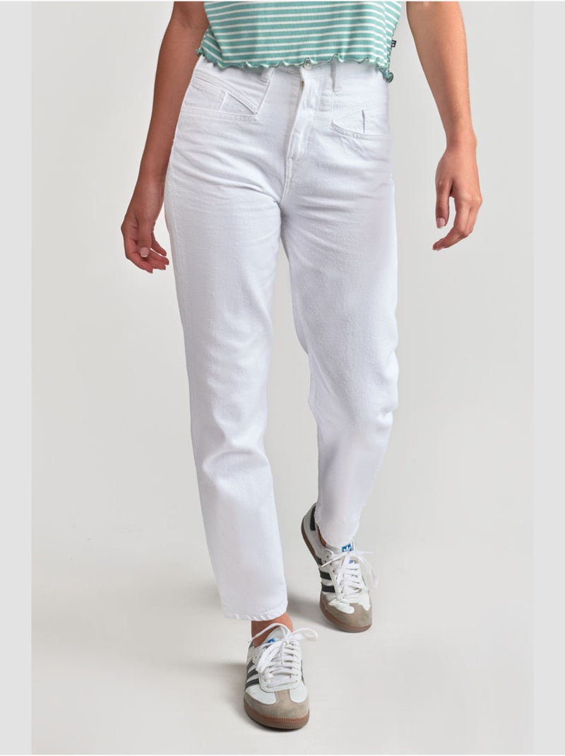 Jeans boyfit loose large 7/8ème 'Le Temps Des Cerises' - Blanc