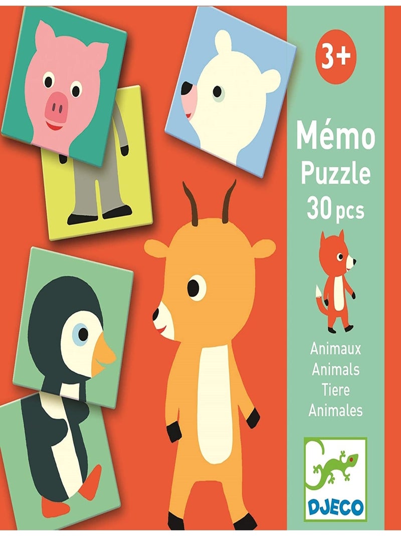 Jeux d'apprentissage Mémo Puzzle Animaux 30 pièces - Multicolore