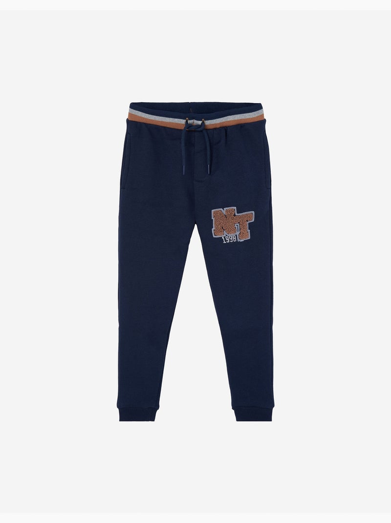 Jogpant en coton peigné avec broderie en bouclé - Bleu clair