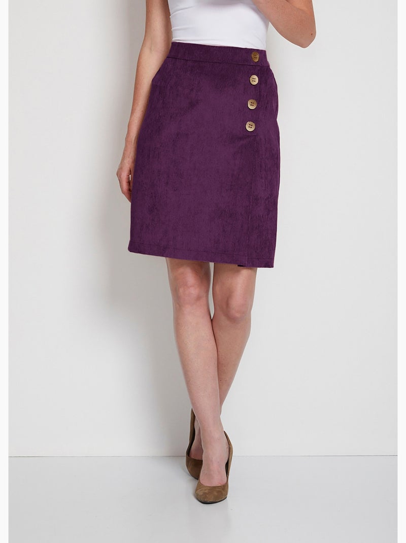 Jupe courte effet portefeuille velours - Prune