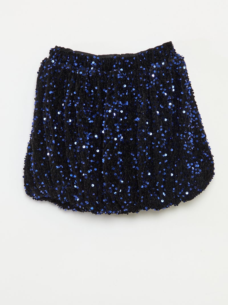 Jupe courte en sequins unie - Bleu
