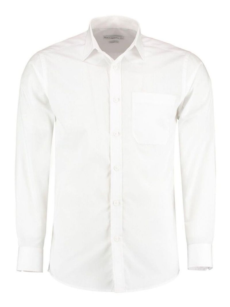 Kustom Kit Mens Poplin Tailored Long-Sleeve Formal Shirt - Blanc