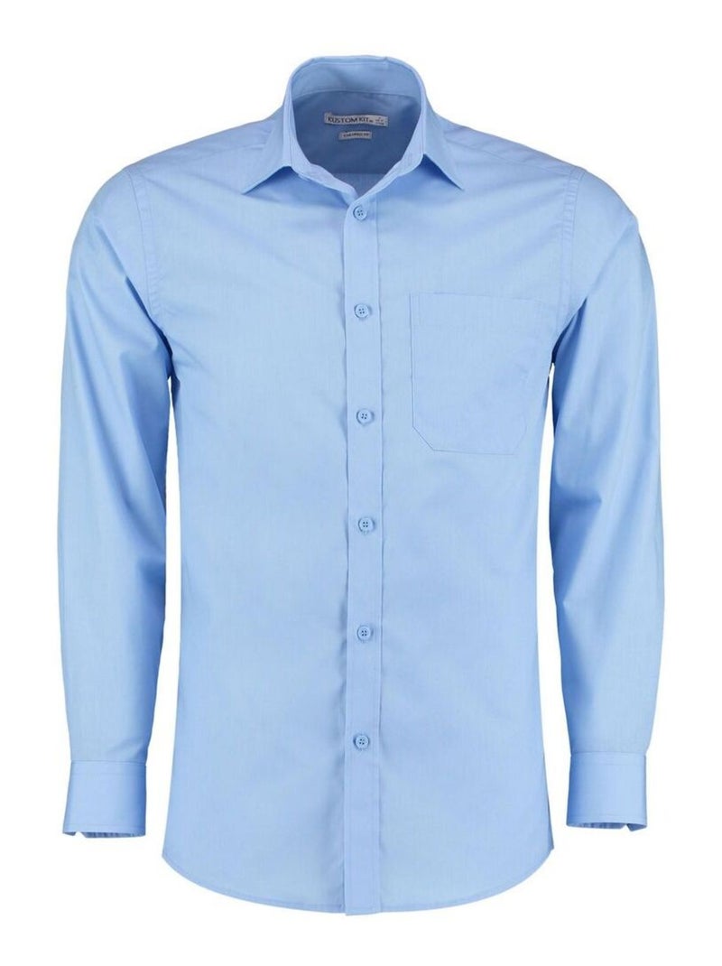 Kustom Kit Mens Poplin Tailored Long-Sleeve Formal Shirt - Bleu clair