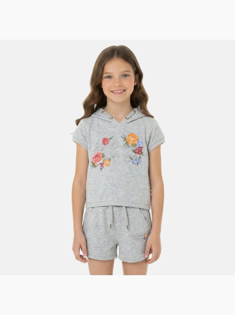 Lee Cooper - Ensemble fille T-shirt manches courtes zippé à capuche et short - Gris