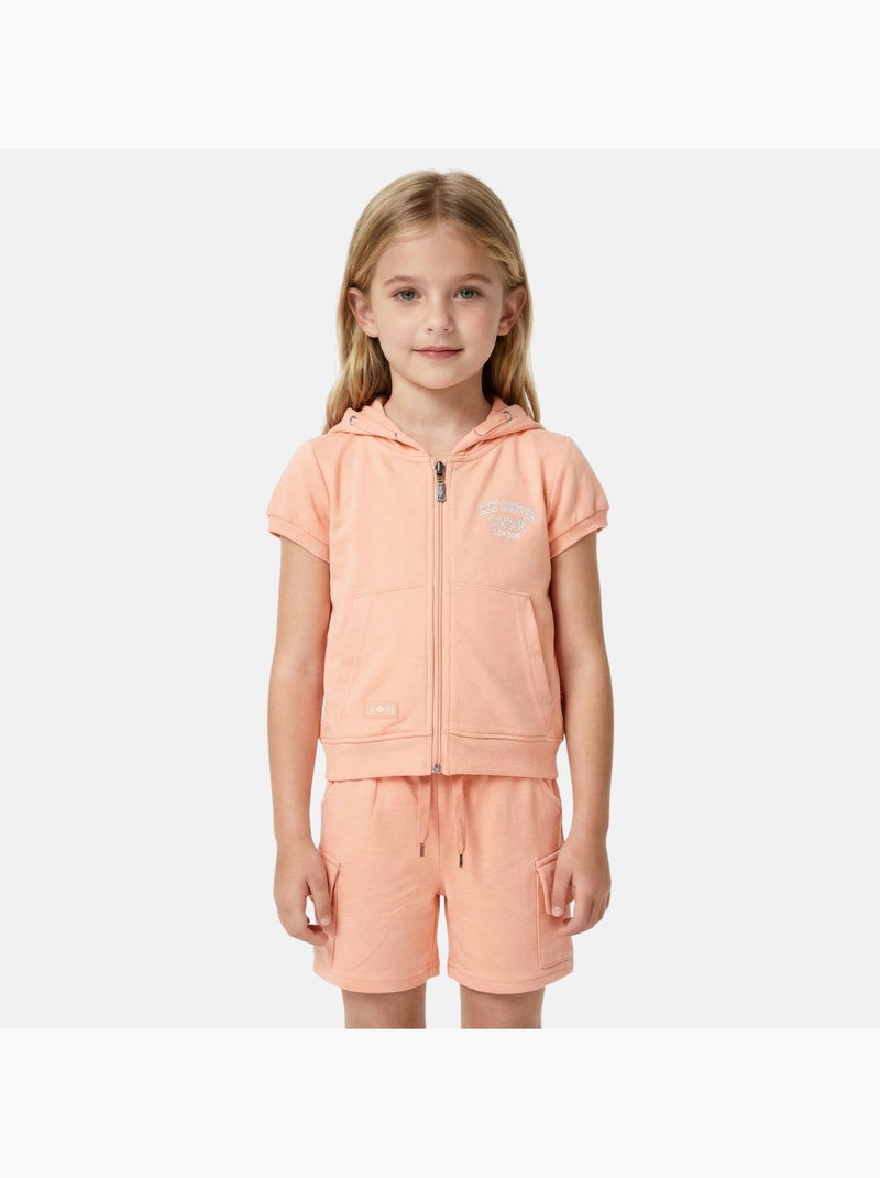 Lee Cooper - Ensemble fille T-shirt manches courtes zippé à capuche et short - Saumon