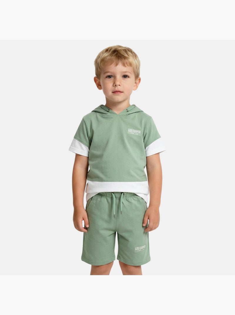 Lee Cooper - Ensemble garçon T-shirt manches courtes à capuche et short - Vert