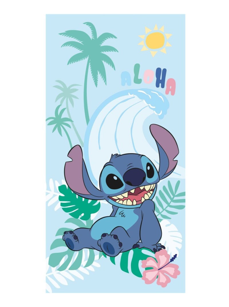 Lilo et Stitch, Serviette de Bain Enfant Imprimé 100% Coton, ALOHA - Bleu