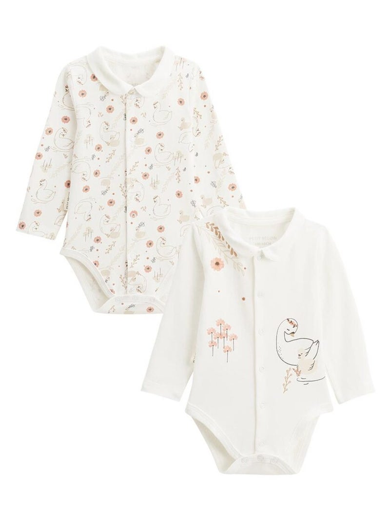 Lot de 2 bodies bébé manches longues ouverture croisée Perle - Ecru