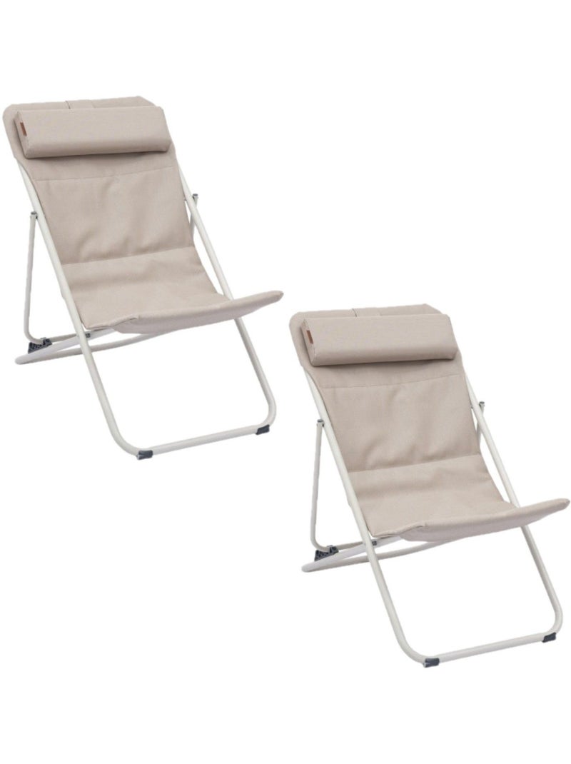 Lot de 2 chiliennes de jardin pliante MIRAEL - Beige