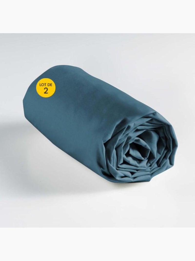 Lot de 2 draps Housse Queen size Coton 57 fils - Bleu nuit