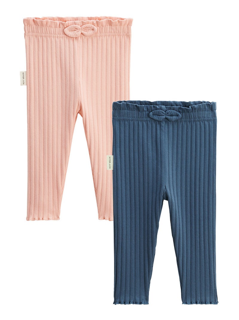 Lot de 2 leggings enfant côtelés Dina - Rose