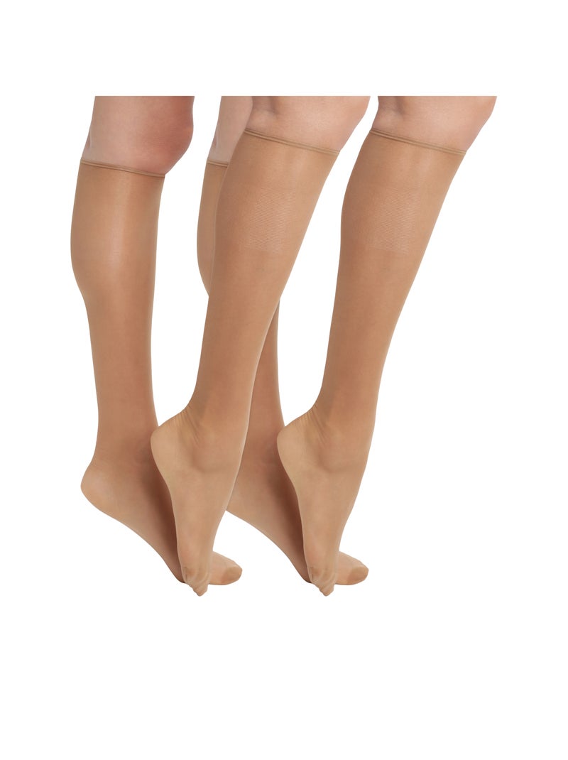 Lot de 2 paires de Mi-Bas Voile Brillant Transparent 15D Sublim - Marron caramel