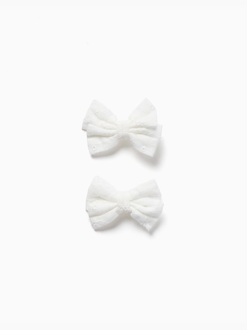 Lot de 2 pinces à nœuds en broderie anglaise - Beige clair