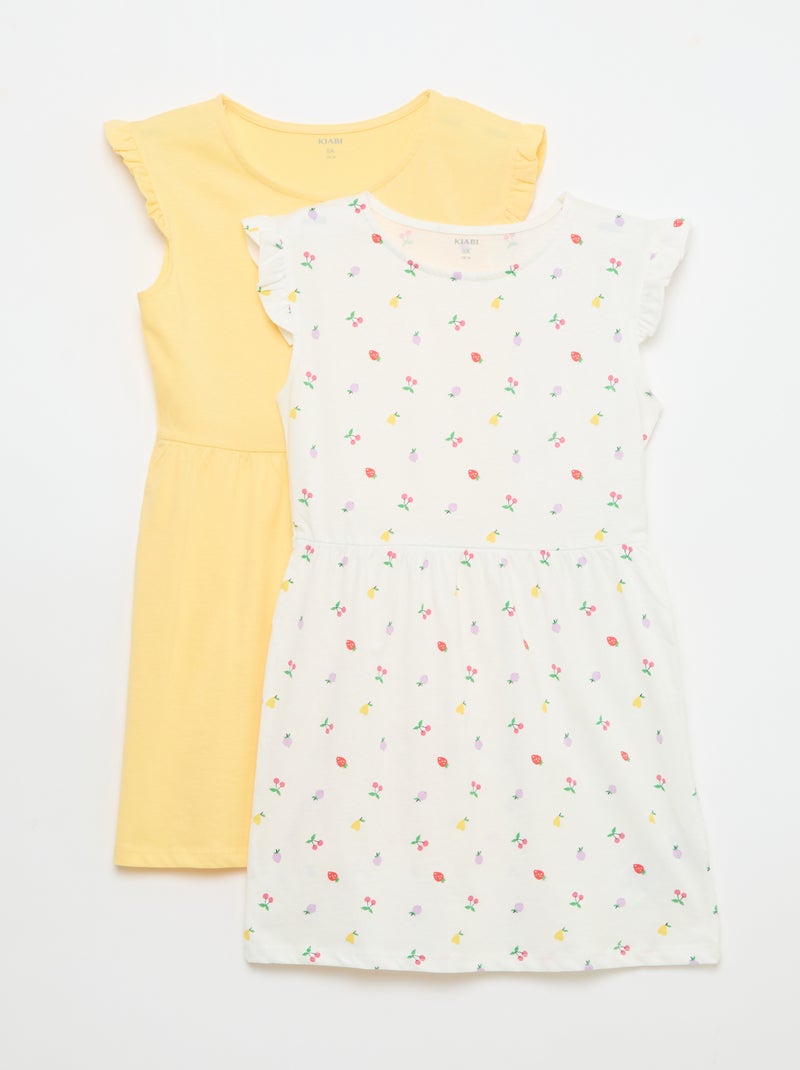Lot de 2 robes en jersey sans manches avec volants - Jaune