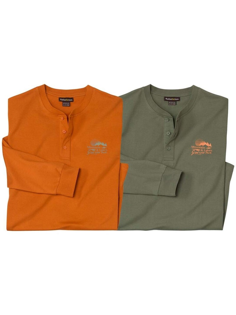 Lot de 2 Tee-Shirts Col Boutonné Eté Indien - ATLAS FOR MEN - Vert/Orange