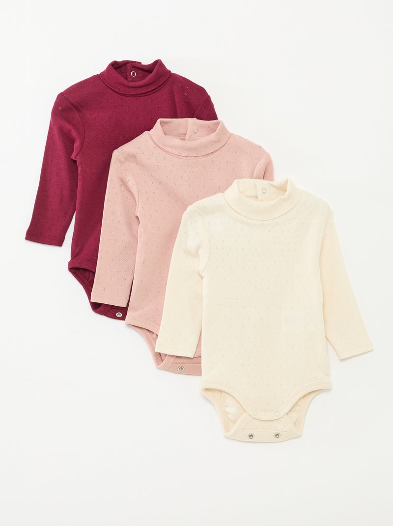 Lot de 3 bodies évolutifs en maille pointelle - Violet