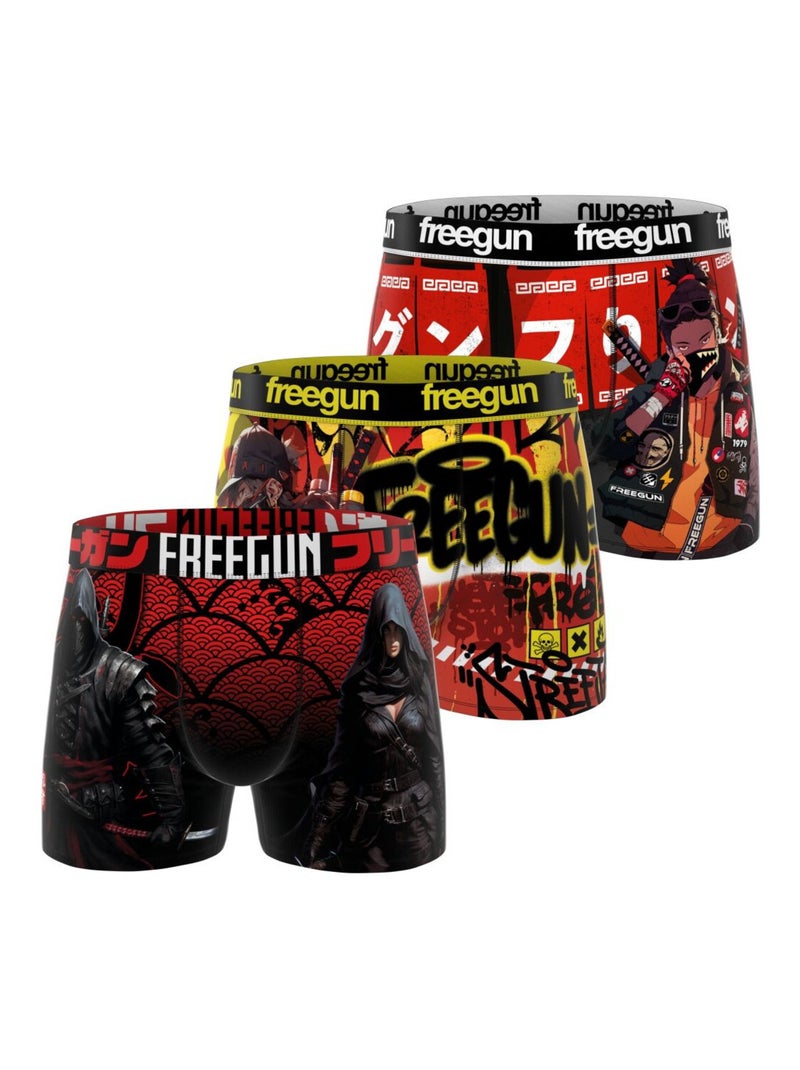 Lot de 3 boxers enfant Manga Comics Freegun - Noir Rouge