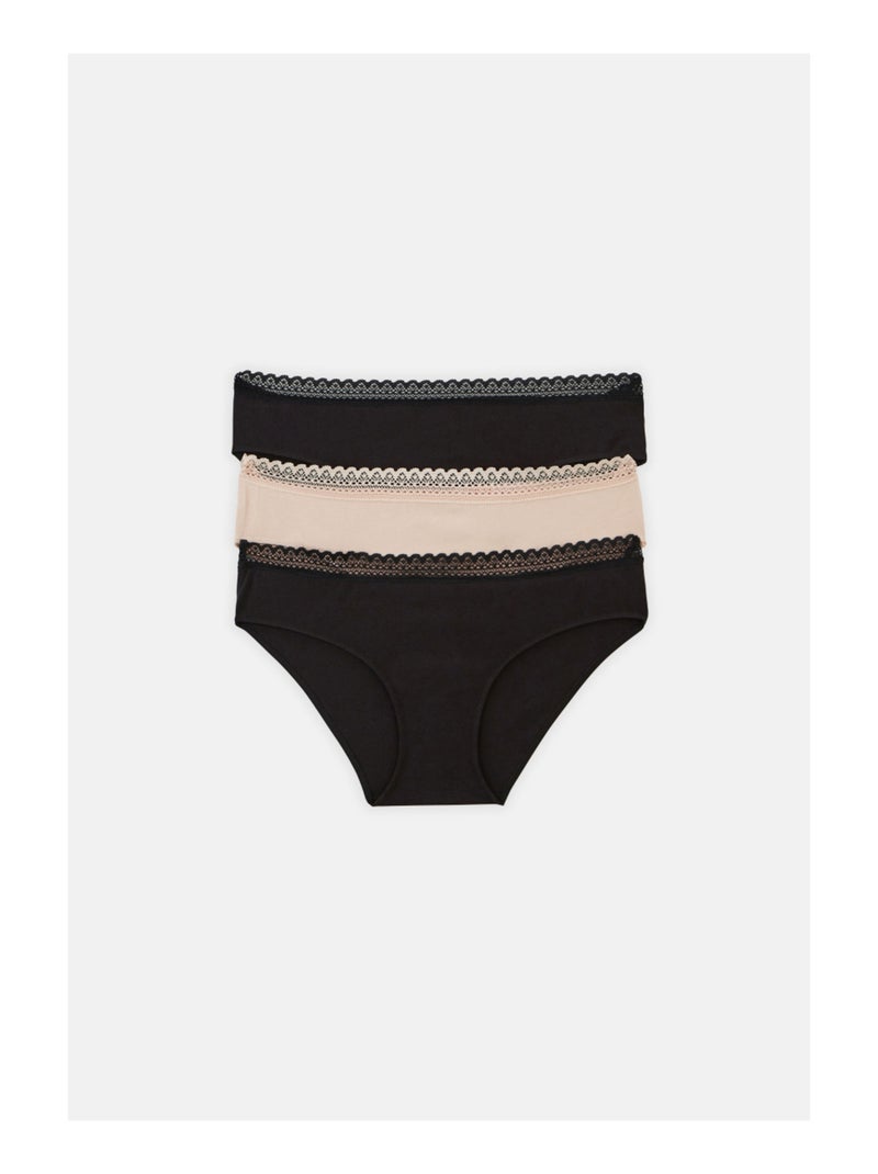 Lot de 3 culottes en coton et dentelle - Noir Rose Noir