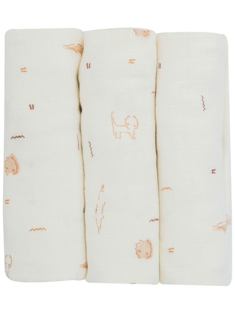Lot de 3 langes en coton bébé - Beige