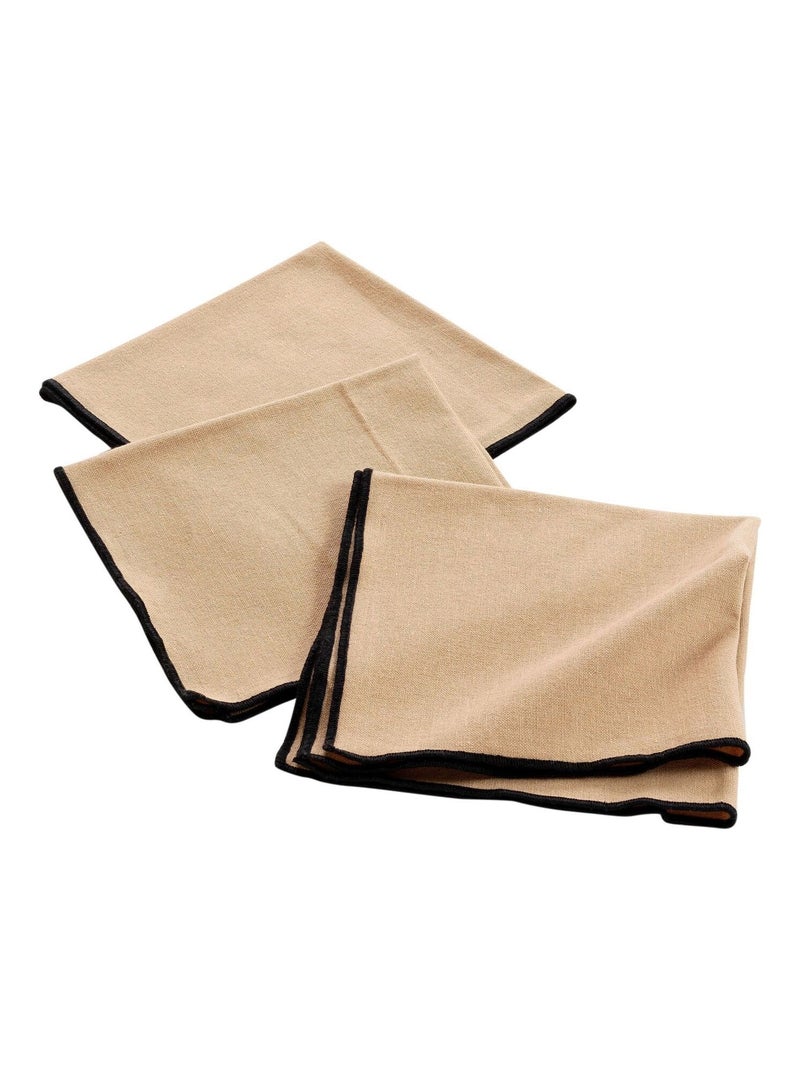 Lot de 3 serviettes de table en coton recyclé Anaïs - Beige