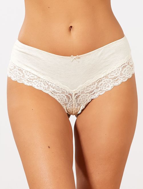 Lot de 3 shorties détail dentelle - beige/bordeaux/gris