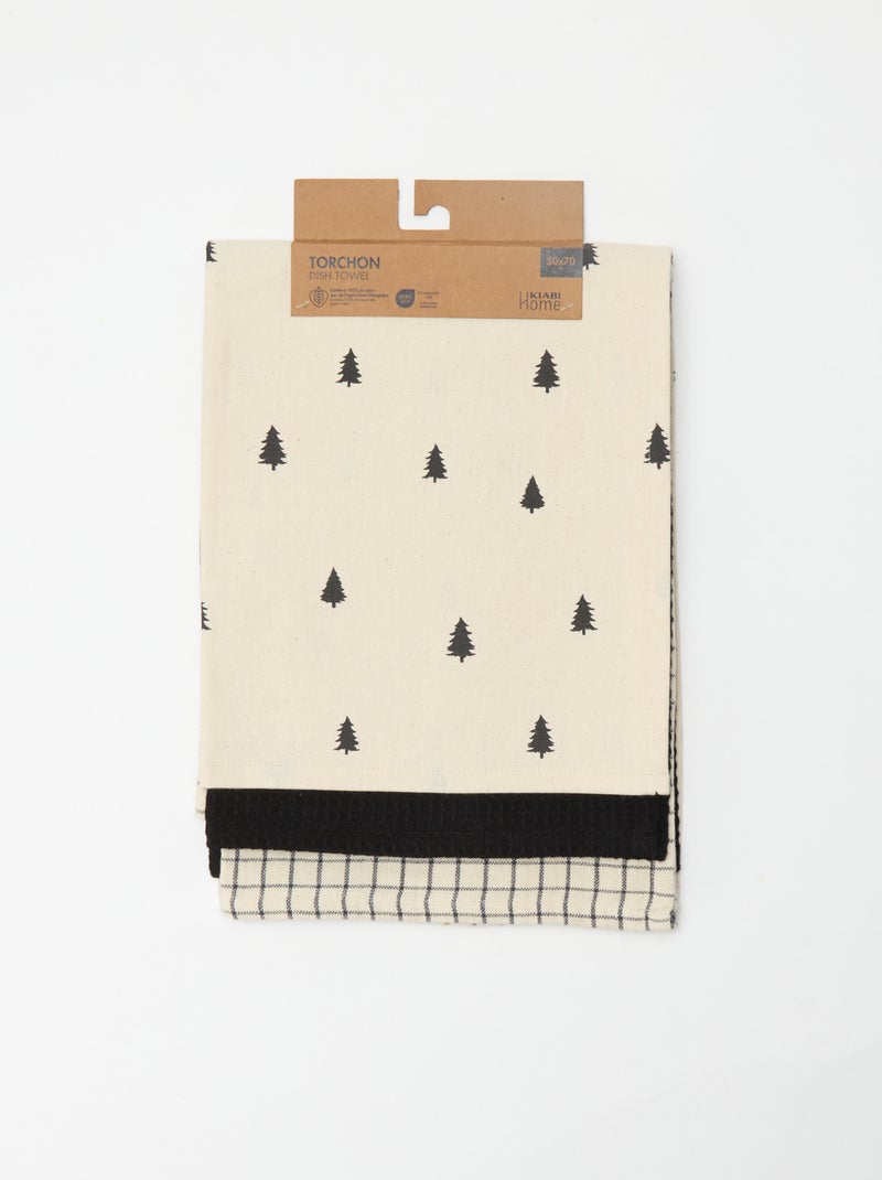 Lot de 3 torchons imprimé Noël en coton 50x70 cm - Noir
