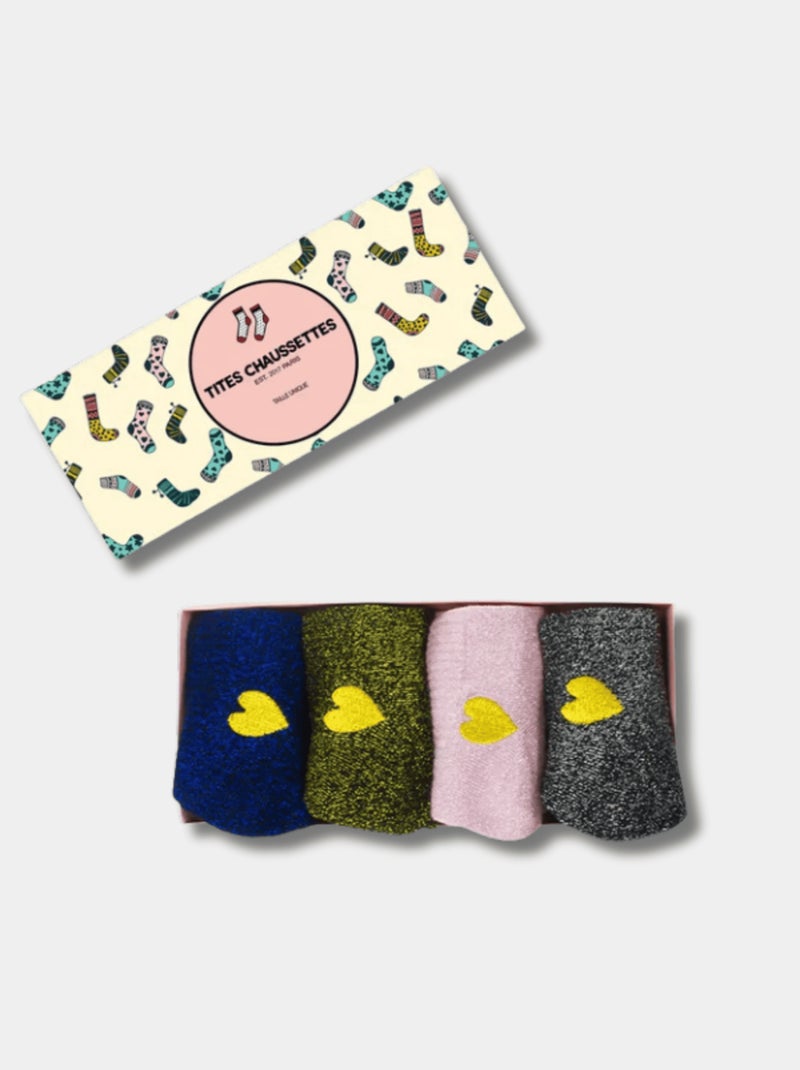 Lot de 4 Chaussettes Lurex & Coeur Pailletées - Multicolore