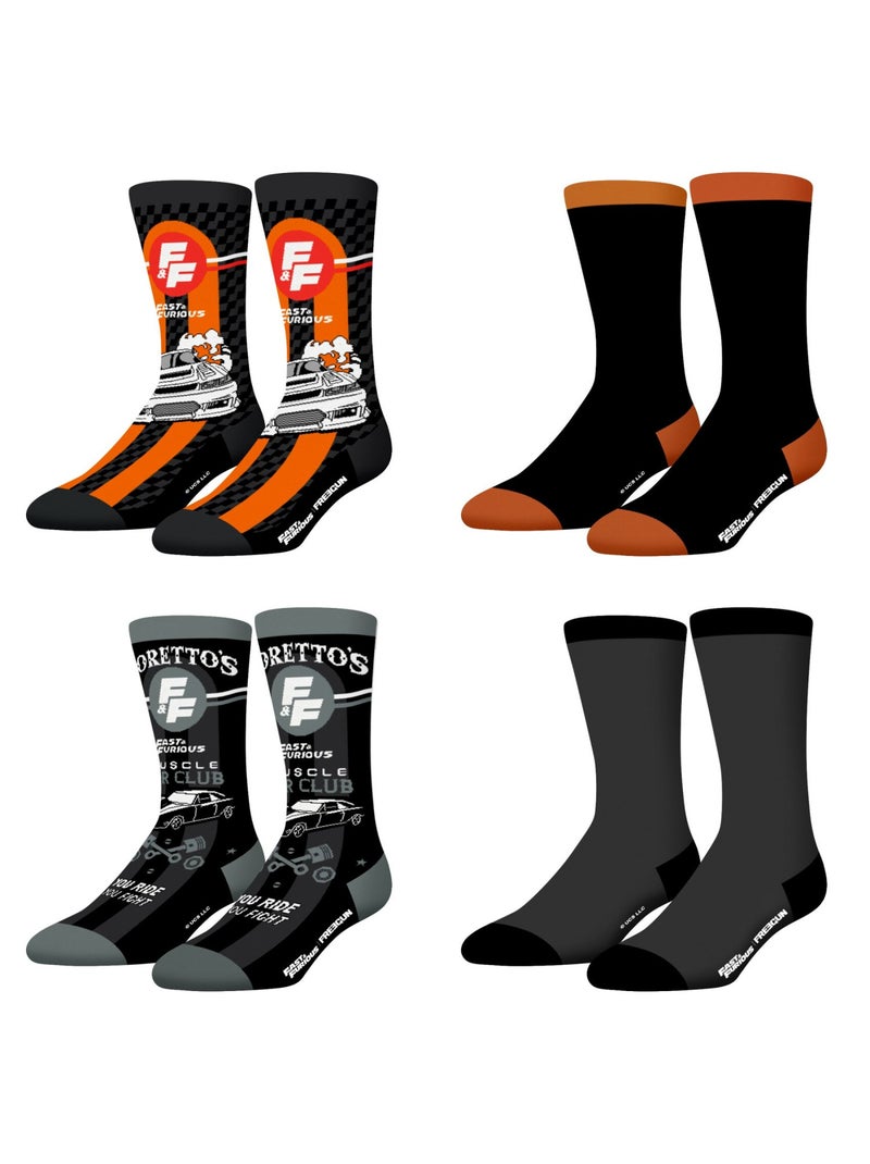 Lot de 4 paires de chaussettes Fast and Furious Freegun - Noir Orange clair