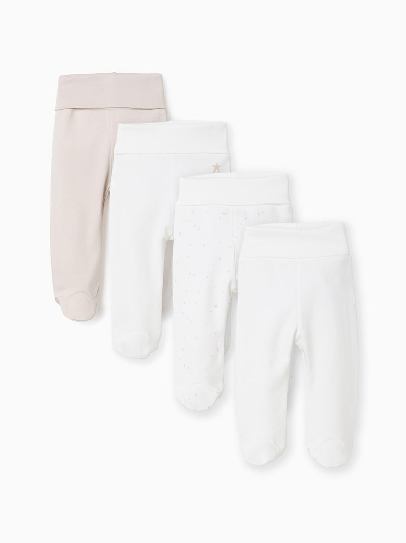 Lot de 4 pantalons à pieds en coton - Blanc Beige