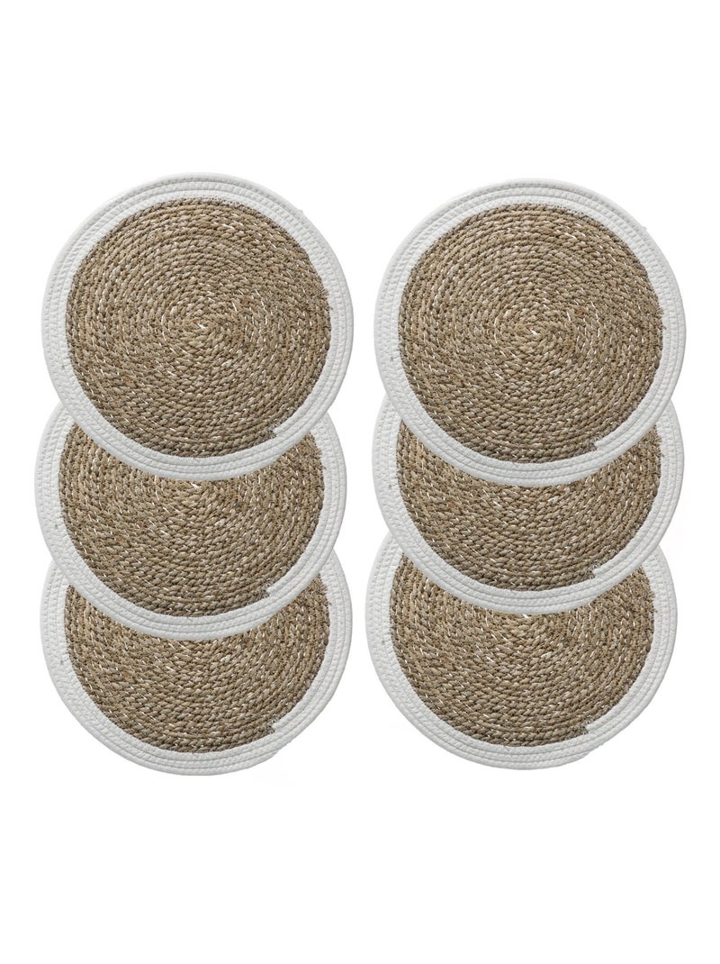 Lot de 6 sets de table rond en roseau et coton Pop - Blanc