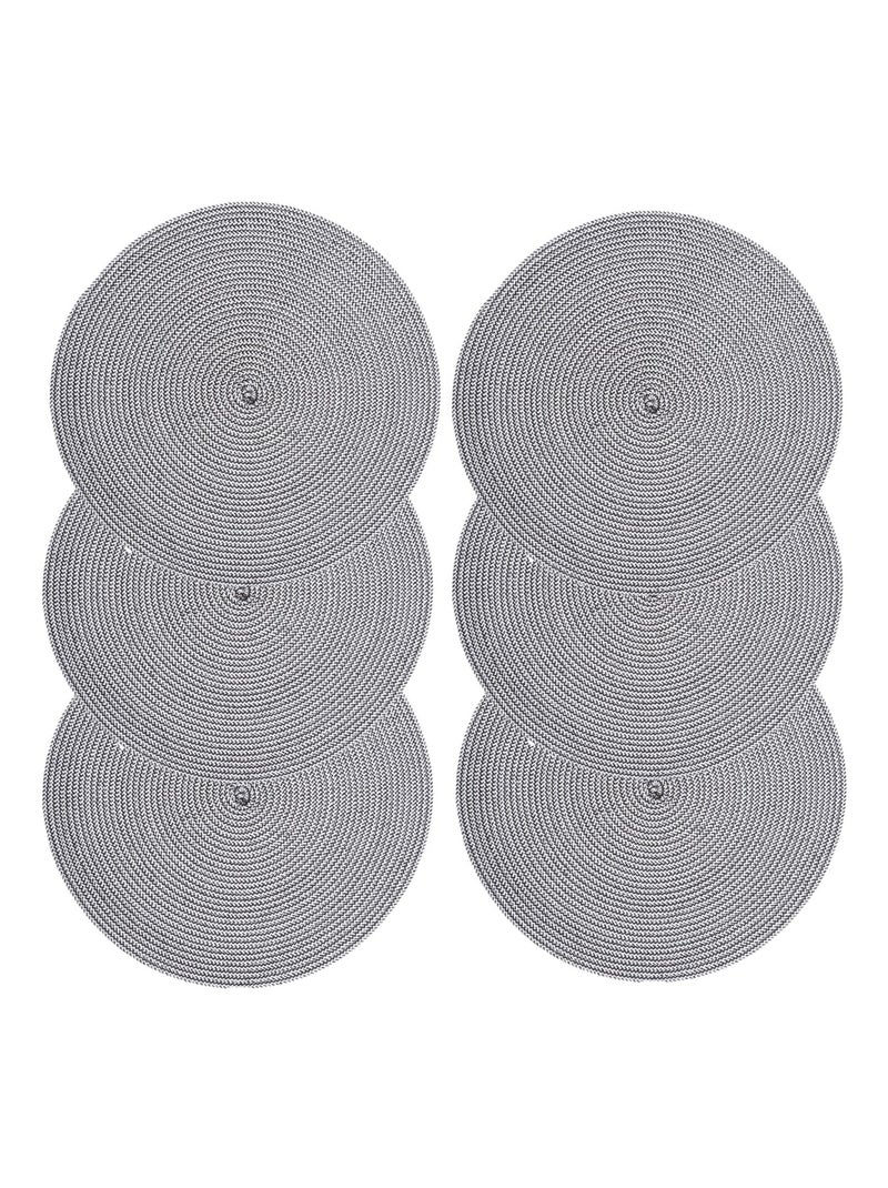 Lot de 6 sets de table rond tressés en polypropylène - Diam. 38 cm - Noir et blanc - Noir