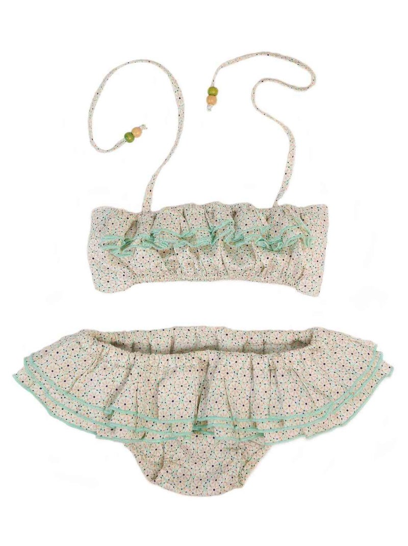 Maillot de Bain 2 Pièces Volants Fleuri Liberty SWAN - La Faute à Voltaire - Beige/Vert