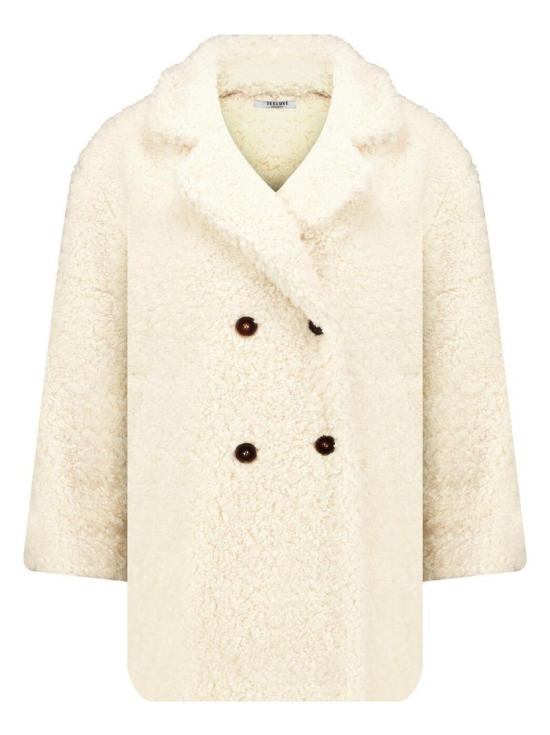 Manteau mi-long en imitation fourrure et en tissu bouclette pour femme 'Deeluxe' - Beige argile