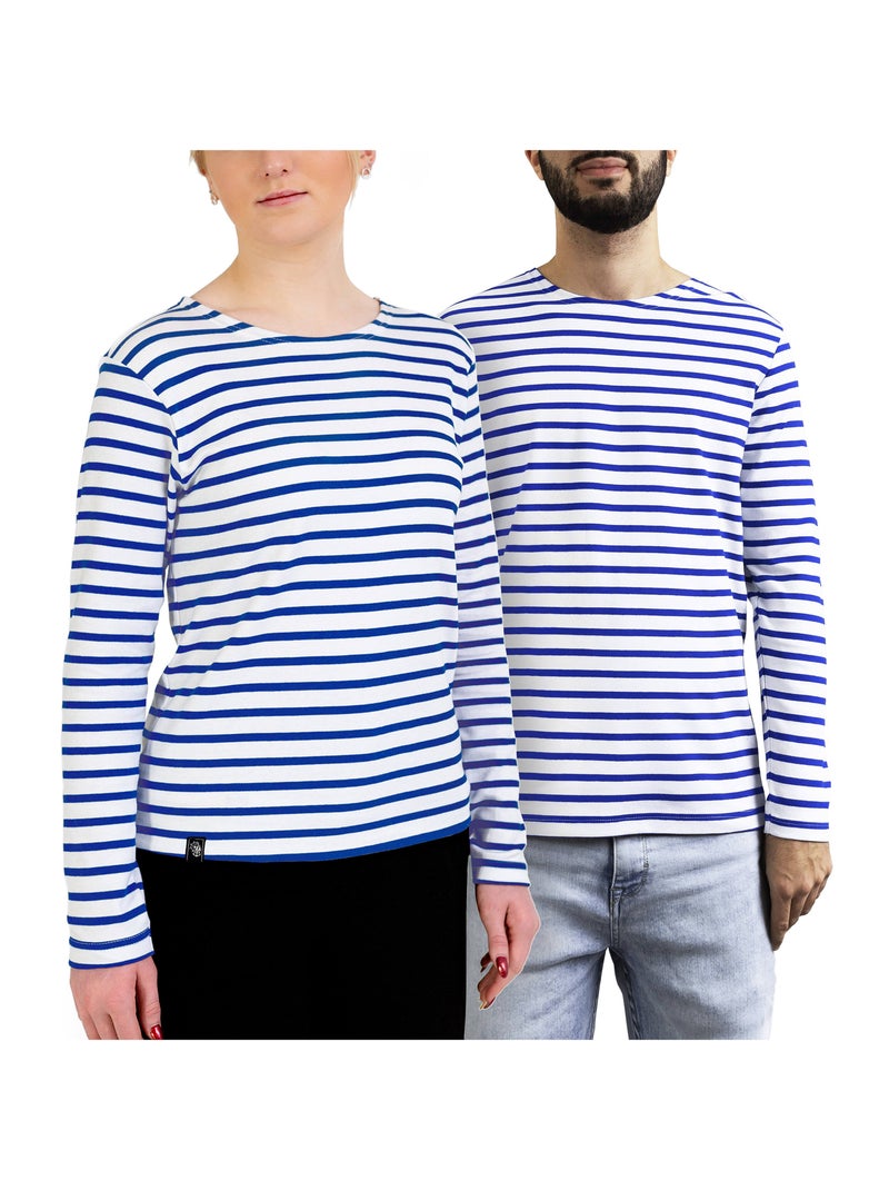 Marinière 'Breizh Océan', T-Shirt rayé mixte épais en Coton Bio, Homme ou Femme - Blanc/Azur