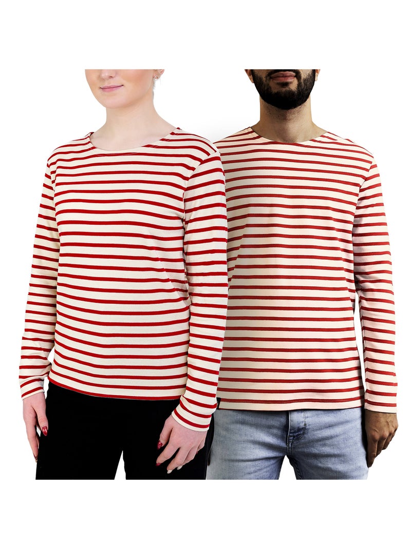 Marinière 'Breizh Océan', T-Shirt rayé mixte épais en Coton Bio, Homme ou Femme - Ecru/Rouge
