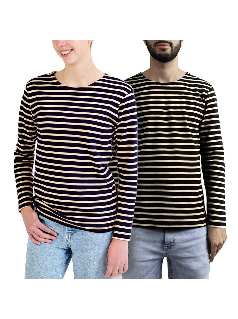 Marinière 'Breizh Océan', T-Shirt rayé mixte épais en Coton Bio, Homme ou Femme - Marine/Ecru
