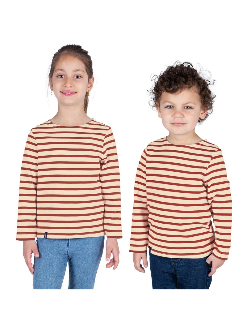 Marinière coton Bio 'Breizh Océan' T-Shirt rayé épais mixte, garçon ou fille - Ecru/Rouge