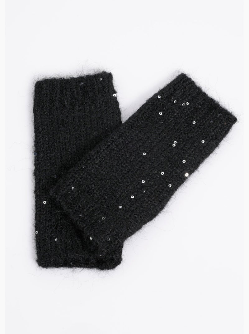 Mitaines maille brillante avec sequins - Noir