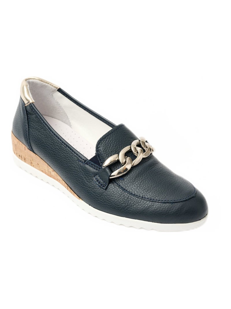 Mocassins chaîne largeur confort compensés - Bleu marine